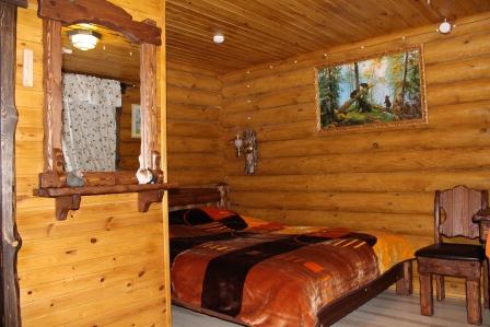 № 2 Деревенский - Номер создан в русско - народном деревенском стиле,в нём большая удобная,мягкая кровать из массива дуба. Возможно размещение третьего человека. Номер с двуспальной кроватью.